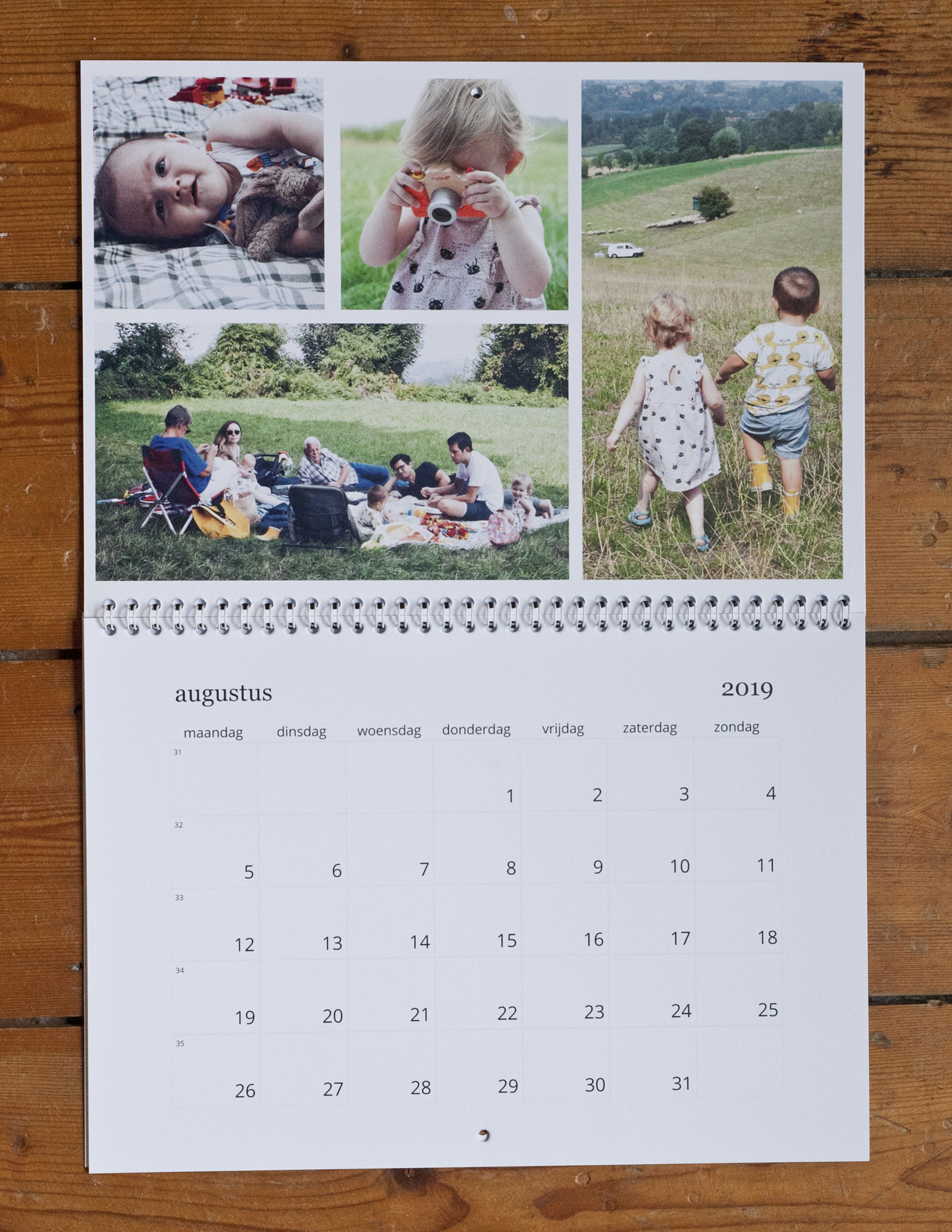 Twee jaar geleden gaf ik mijn ouders en schoonouders een kalender cadeau met de mooiste foto’s van de kleinkinderen van het voorgaande jaar. Een cadeau dat perfect in de smaak viel. Zo goed dat nu van mij verwacht word dat ik dit ieder jaar doe. Nou ben ik de moeilijkste niet en hou ik de traditie graag in ere. Wat ik heel handig vind bij Albelli is dat het online programma super gebruiksvriendelijk is. Ik verzamel eerst de favoriete foto’s van afgelopen jaar, dan kies ik een ontwerp (niet teveel poespas, dan komen de foto’s het beste tot zijn recht is mijn mening) en is het een kwestie van de foto’s op de juiste plek slepen. Wederom liet ik deze kalender ook op extra mat papier drukken.
