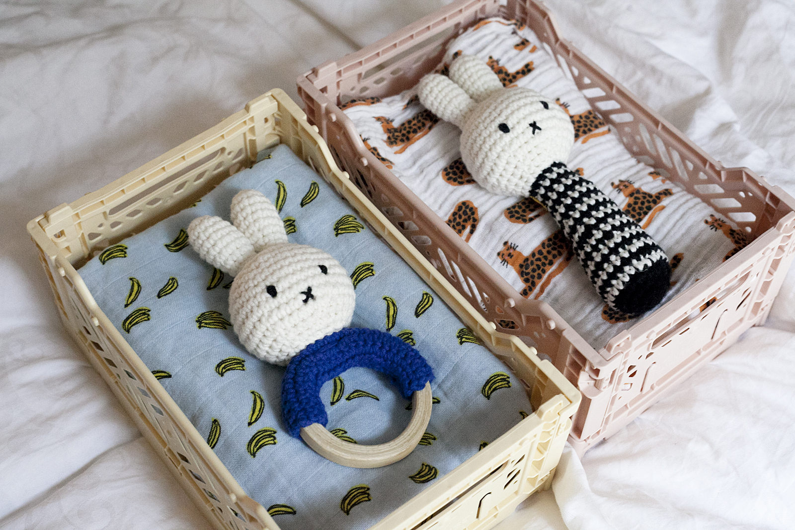 Wie mij volgt weet dat we hier in huize Ponto gek zijn op nijntje. Tijmen is verknocht aan zijn gehaakte nijntje en boris poppen van Just Dutch. Sinds een tijdje maken ze ook rammelaars. Eigenlijk een kleine nijn, boris of nina, met een houten ring of geheel gehaakt. Tijmen noemt de rammelaars babynijn. Hij pikt ze ook regelmatig in en legt ze dan naast nijntje en boris in bed. Ze worden handgemaakt door een groep vrouwen met een afstand van de arbeidsmarkt. Zo hebben zij een stabiel inkomen. Vanaf 17,95 bij Just Dutch